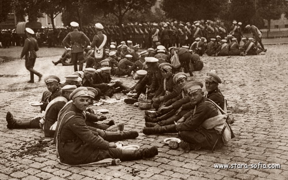На снимката - войници отдъхват на площад "Св. Александър Невски"